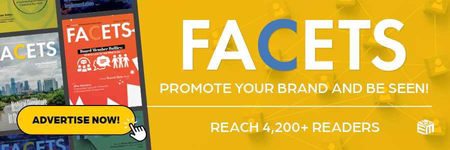 E&M Consulting, Inc. is reaching out to members for advertising opportunities in our Facet Magazine. We appreciate your support of this publication and hope you will continue to see this as a significant membership benefit. With its targeted reach, credibility, and longevity, magazine advertising is a valuable and memorable option. E&M’s expert team is here to create visually appealing ads aligned with your branding and marketing goals. The magazine will be available and distributed to each member in print and digital formats.